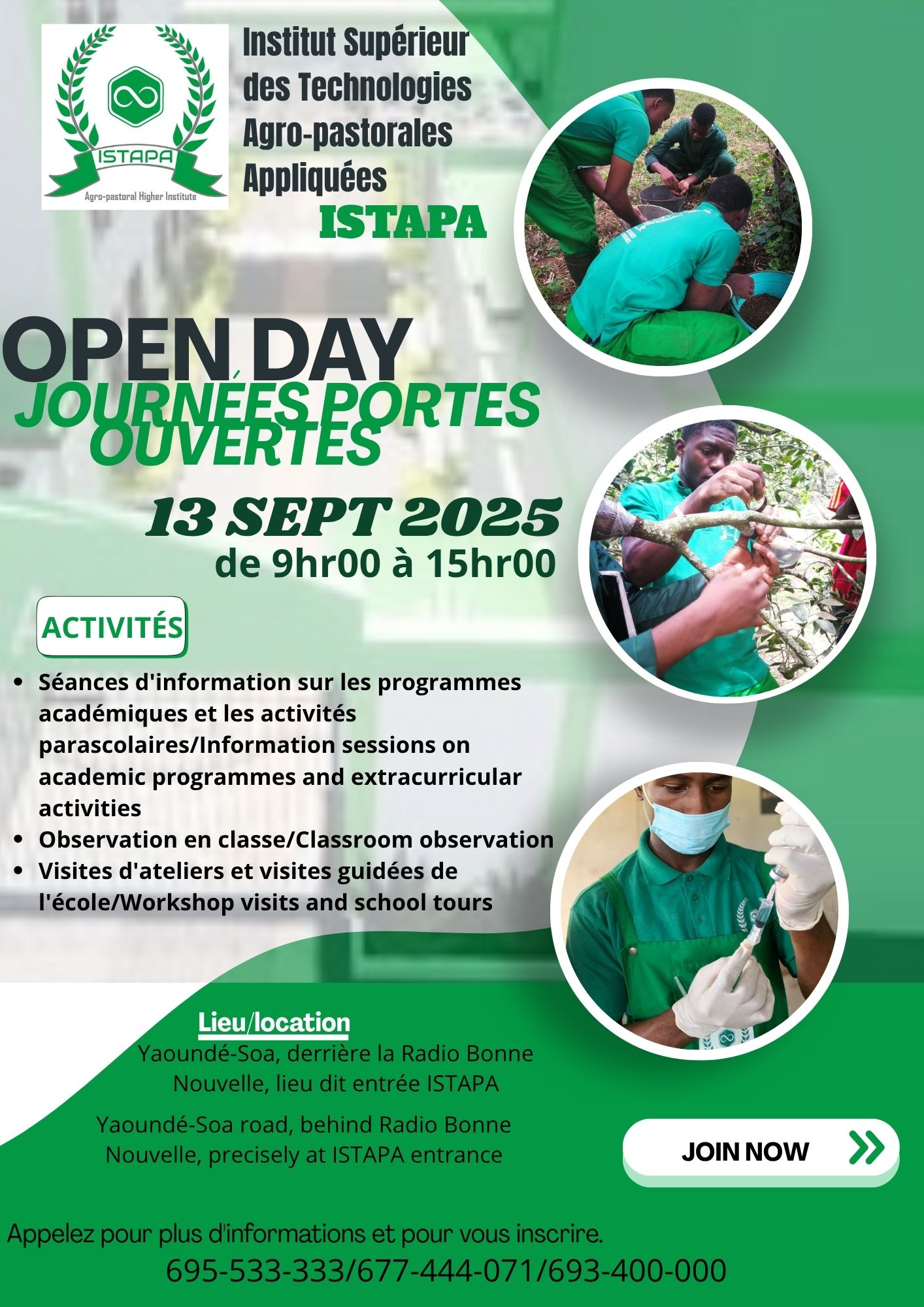 L’Institut Supérieur des Techniques Agro-Pastorales (ISTAPA) est une institution académique de référence dédiée à la formation, à la recherche et à l’innovation dans les domaines de l’agriculture, de l’élevage et de la transformation agroalimentaire.